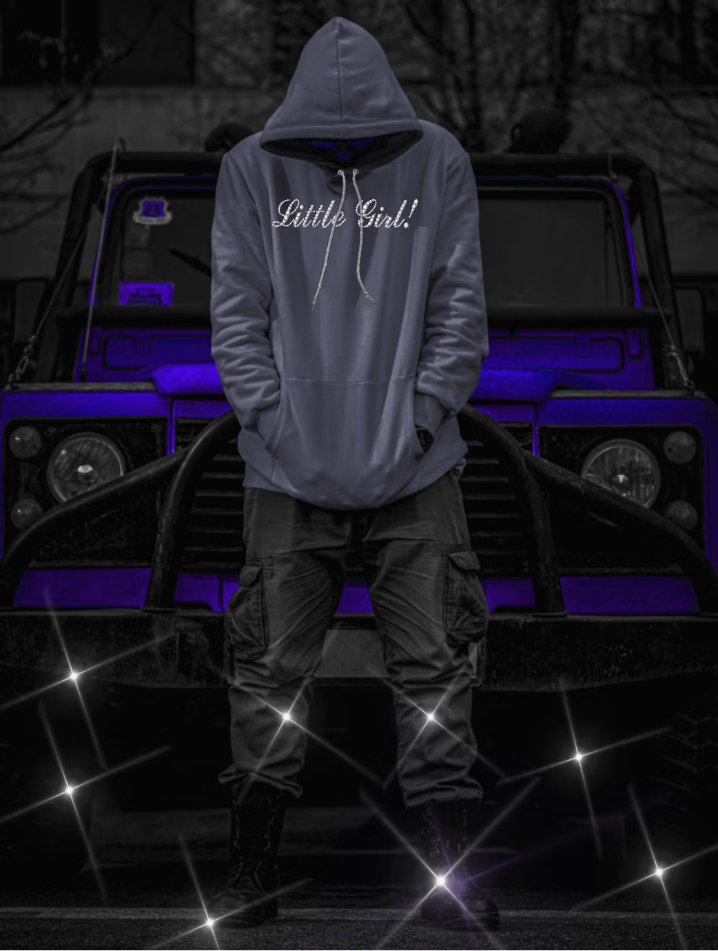 Collector's Item. Swarovski crystal, large print, "Little Girl" hoodies with Swarovski crystal drawstring on a luxuriously soft fleece lined fabric.