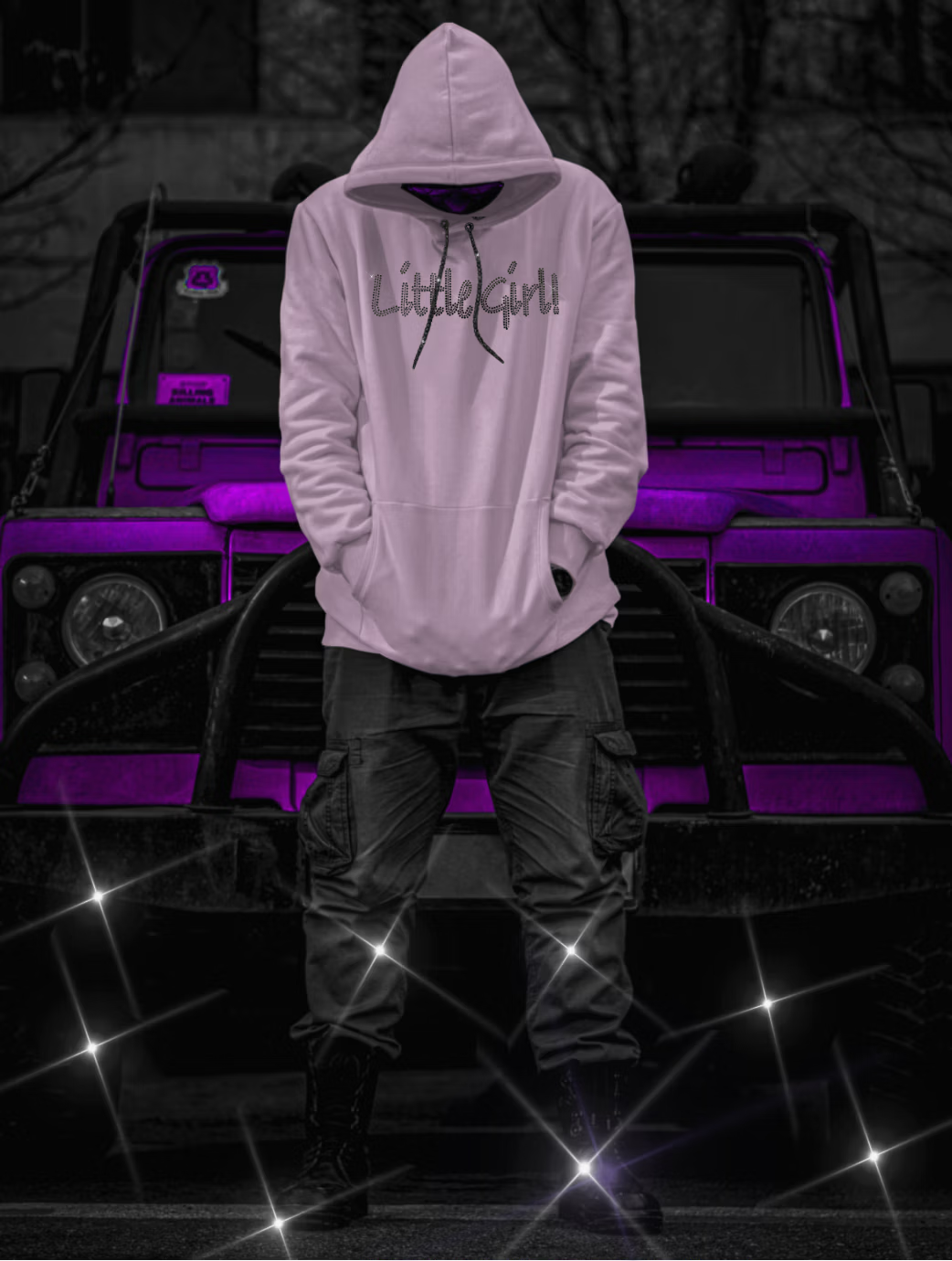 Collector's Item. Swarovski crystal, large print, "Little Girl" hoodies with Swarovski crystal drawstring on a luxuriously soft fleece lined fabric.